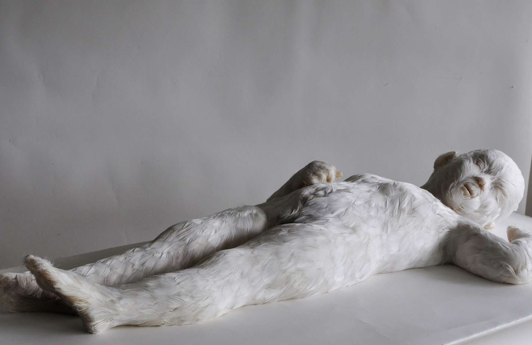 La superficie delle sculture è fatta di cera e di piume, evocando così anche il mito di Icaro: quasi angeli caduti, le sue creature addormentate sembrano sognare i voli che potrebbero fare se avessero ancora le loro ali.